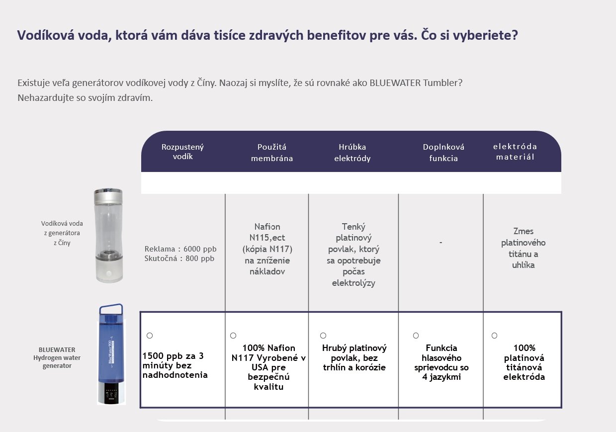 - Ekonomický aspekt: Hoci počiatočná investícia do BlueWater BW900 môže byť vyššia v porovnaní s bežnými fľašami na vodu, z dlhodobého hľadiska môže priniesť úspory, keďže eliminuje potrebu kupovať balenú vodu alebo drahé vodíkové vody.